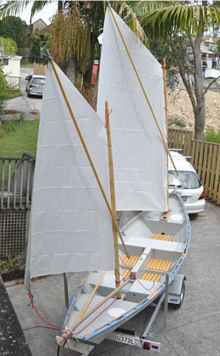 Another change to the original design is the seating position, which had the helmsman sitting behind the mizzen. I have moved the mizzen back slightly (matching the centreboard, which was also moved), and the helmsman sits in front of the mizzen and has full use of the cockpit. Now that I am sailing the boat I can see that I made the correct decision.