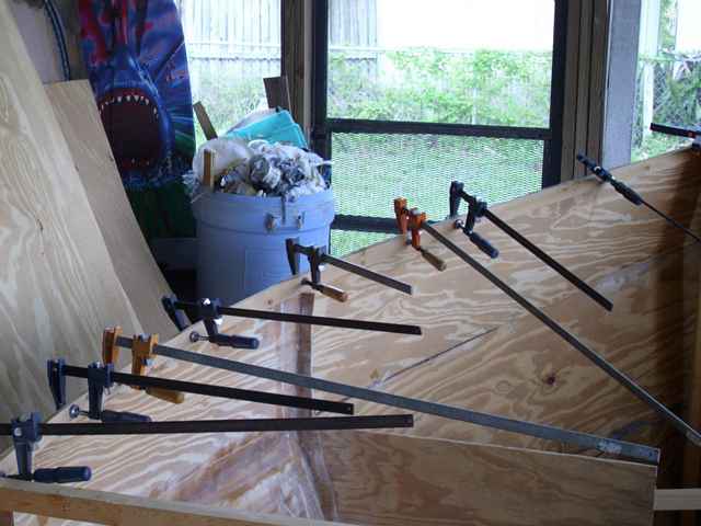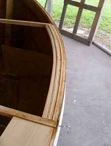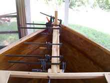 Laminating 1x3's for the bow covering back to station 6. |