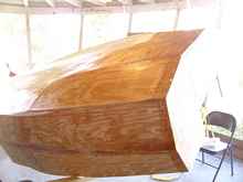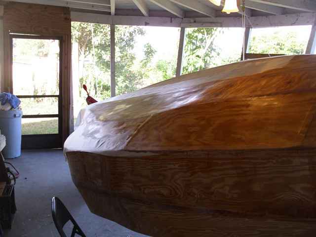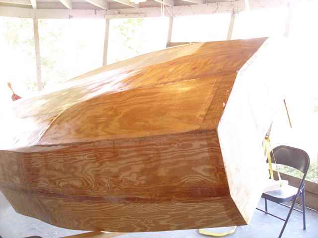 My hope is that I can hide all my goofs with glass and paint. When I started it sounded like such an easy thing to cut out the parts and stitch them together. I was not seeing how much would be required in the stitching process. That's ok; it makes a good boat.