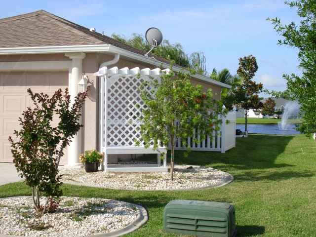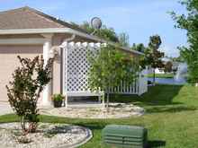 I had to take time out to keep my Lady Friend happy. She had a dead tree on the corner of the garage. The new tree didn't satisfy her taste and she went looking for a concrete bench. Which were overpriced and plane looking! This pergola bench has a lot more class and looks perfect on that corner. No, sorry I don't have plans. It was an easy job, 4x4 base (hidden under the gravel) 2x4 uprights, 2x4 frame for bench ,1x3 slats and a 4 ft x8 ft lattes on the back. Note the 1x3 behind the lattice, you can lean back and not feel like you're falling thru.