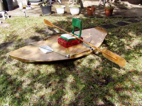 This is a fun boat. My test pilot can stand or sit and balance easily. Personally, I feel like a cheese box on a raft similar to the USS MONITER ironclad of civil war fame, I am sitting out in the open with the breeze using me for a sail. I use a nine-foot long double paddle, which works sitting or standing. I copied some elements from the plastic kayaks for storage and tie downs. This is a nice weather boat but what fun!
