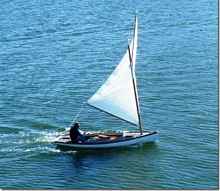 Mike Wick always sails right on the verge of getting into trouble. Here he is in the boat he cold molded from the hull of a Cortez melonseed. Check the rudder angle, looks like he's about to round up and play bumper car with the other boat.