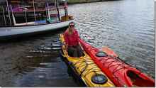Cute girl in a kayak, this is Summer, one of the honey's we try to discourage from coming around and messing with us. Like all women, they ignore us. We've noticed that the women who like to come here are very self reliant and sure of themselves. Give this one any crap and she'll come back with something like " how'd you like that other hip broken old man".