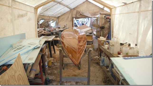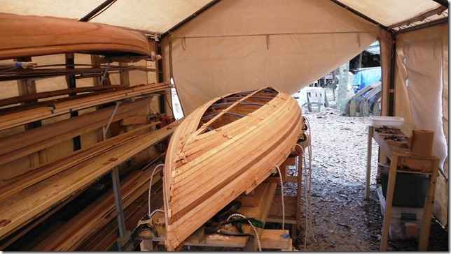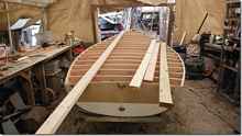 Mereck is building a Wee Lassie out in Sandy's shed. I love it when new guys hit the part where the twist comes in and the strips start to pop.