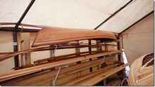 Last time he brought his sailing Wee Lassie, here with a new varnish job; we'll see if he gets the catboat finished.