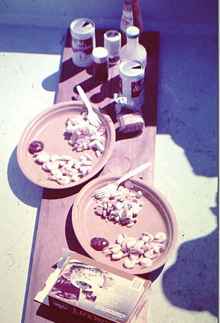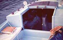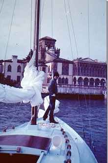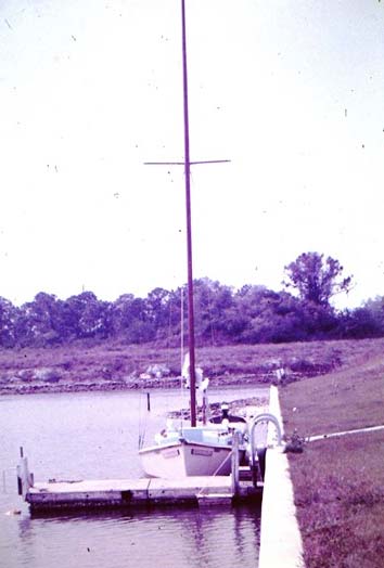 The boat "Helen Marie" (yes, I know that our current boat has the same name) was extremely fast off the wind as you'd expect with a light wide boat with a lot of sail. We didn't use the usual skipjack sail rig with a short mast and super long boom, instead she had a 40 long foot cabin top stepped mast and a 20 foot boom which gave us almost 400 sq ft in the main and this giant jib which was just about as big. We loved to race other boats off the wind. When it came to beating into the wind it was time to head for the calm water and fire up the outboard. We sailed across the bay to St Pete and were off the end of the starting line for the start of the 1975 SORC series. These were big fast ocean racers including that year the 12 meter boat Stars and Stripes. The wind was out of the north east at about 20 and with the waves kicked up we could easily surf. By the time we got down to the skyway about 10 miles away we were way ahead of the whole million dollar fleet. I bet there were some really frustrated racers on those boats. Getting back home really sucked; once we rounded up into the waves we had to drop the jib, reef down the main and head for the shelter of the protected eastern shore.