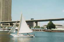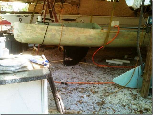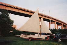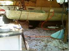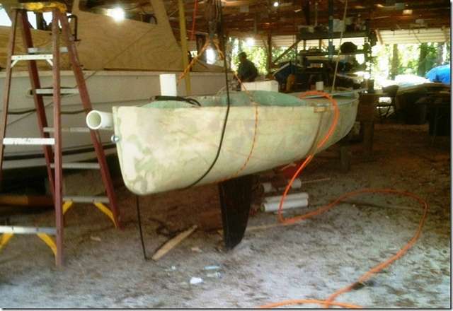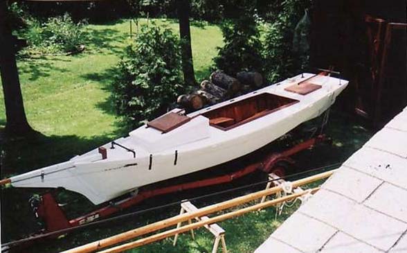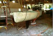I'm still working on John's EC boat. Put the front centerboard in last week to check for the fit. Looks pretty mean doesn't it? We're trying to anticipate everything that would make this a perfect boat for this race. John says that I'm goofing off a lot (his words are a lot harsher) but it takes a while to figure out how to do it and make it perfect (and I seem to get side tracked a lot).