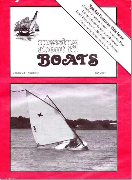 Once in a while Bob hits a home run with the cover of his MAIB's. This is one of the best pictures of a boat under sail I've ever seen. Note the perfect shape of the sail, the nice bow wave flowing down the hull and the cool calm relaxed look of the guy sailing this little beauty. Lenna Andrews took this shot at Cedar Key last May of me zipping along in a good blow. And no, I don't need no stinking reef.