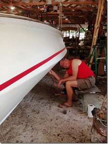 What do you do when you're a successful business man, have beautiful women falling all over you and know pretty much everything there is to know (kind of like me and Whalen); what you shouldn't do is build a boat! All of a sudden you know nothing and start to question your whole life. How can this be so hard when it looks so easy. Fland Sharp did just that and is doing a fine job of it but it's taking way longer than he thought, good thing he's not paying by the hour. This boat is a Point Comfort 18 skiff and it looks like a nice boat.