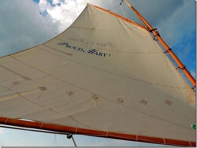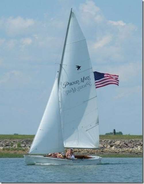This is another picture of Richard Honan's "Proud Mary 2" sail. This is the 16 foot Melonseed he built.