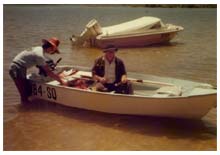My brother and an old friend Col. That was our boat. 12' bond wood. It leaked and was glassed with chopped mat and polyester. Now I could tell them that will not work. |