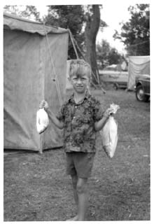 I was not a fan of fishing. I hated the going nowhere fast sitting still. I was an active little boy and I loved swimming in the river above at high tide. They went fishing at high tide every day - for six hours - in a small boat. I had to swim at low tide in the mud, sea lice and weeds. This mostly went on for the whole four weeks were camped.
