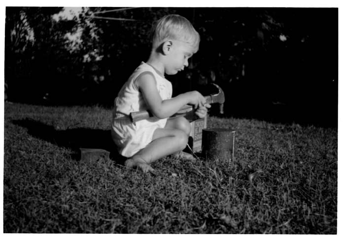 I loved working with tools and this is me at about 2-3. Notice the nuts all over the lawn around me. |