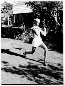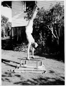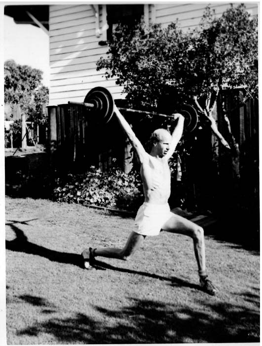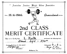 Leo was very active before marriage though and had friends who did balancing and weights. Leo had a few Queensland records for weight lifting. He lifted 370lbs in a dead lift which was to his waist. He actually weighed 8 stone, 13 pounds and was a bantam weight - the lightest class. The certificate got his weight wrong. He was 6' tall. He did weights until around the time I was born when he was 45.