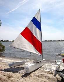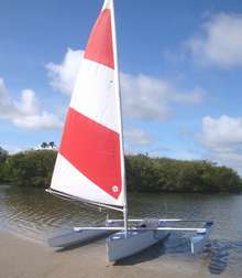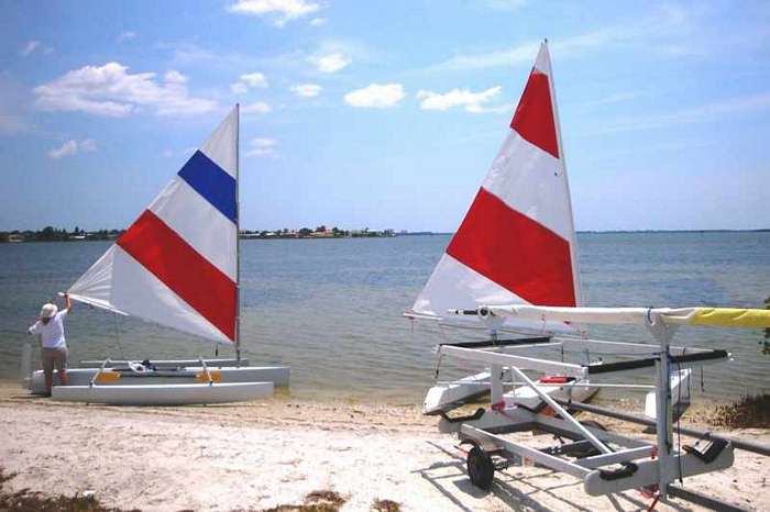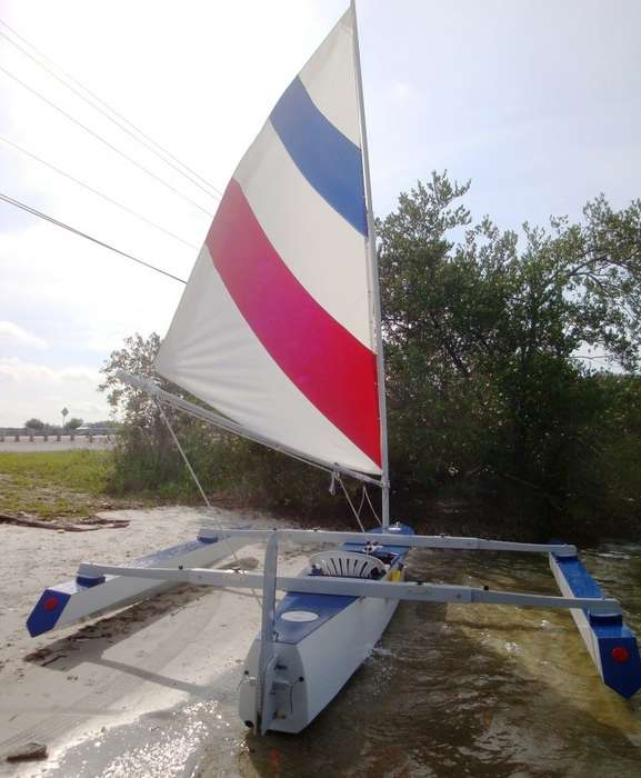 5. They turn and tack better than catamarans, and if done right, just as well as monohulls. This may not seem important until you really, really need to turn quickly in fairly close quarters. I have to confess that my catamarans were really bad at turning in a hurry, especially is the wind was really up - which is yet another reason I love these little tris! 6. They can sail well in extremely shallow water. Mine will sail in just 5 inches, and Laura's in even less! Now, this may not be a big deal where you live. But here on Florida's Sunshine Coast, the bays can get REALLY shallow, especially at low tide. But if I simply pivot up the leeboard(s) and let the rudder kick up, I can take off – even upwind - in as little as 6” of water!