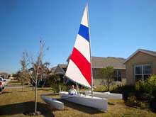 2. They sail virtually flat. I don't know about you, but every time I’ve been in a monohull sailboat that tips over precariously when the wind gets up, I feel like there ought to be a better way to sail. Well guess what - there is a better way! And you never have to hike out to keep the thing from falling over! 3. They are very stable, and stable = safe! When we first got interested in sailing back in 2010, my wife Laura and I bought an old Laser II dinghy to see if we really liked sailing. Unfortunately, we dumped it first time out. The mast sticking in the bottom mud of Lake Manatee was all the "clue" we needed that this boat wasn't for us. Time for something more stable! 4. You sit comfortably on an actual seat, facing forward -- "armchair sailing," as legendary trimaran designer Jim Brown puts it. And because you steer with your feet and can put the mainsheet in a cam cleat, both hands are free! That's how my wife Laura was able to shoot the above YouTube video “hands free” from her own trimaran. And as you can see, she was going almost as fast as I was!