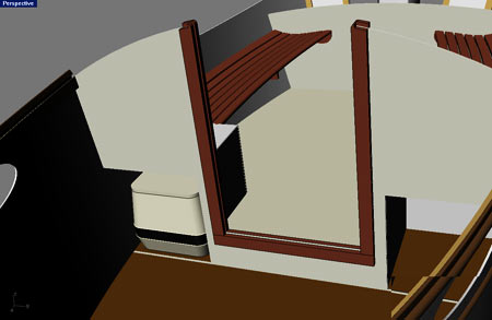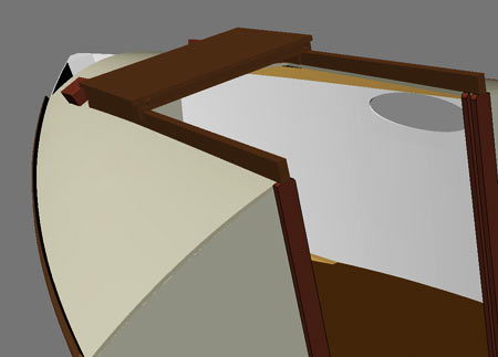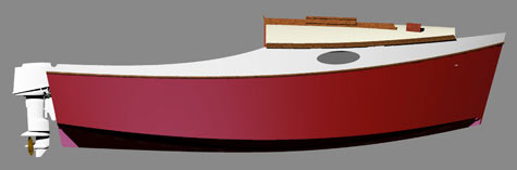 The CenTex-16 was designed to address each of these goals. She was given the profile of the beloved Sharpie, with plenty of rocker, to help her track. Sharpies are well-known to be easily driven, and but a few horsepower will bring her to hull speed. In a departure from the standard flat-bottomed Sharpie, she was given a hull with a slight vee, to soften her ride both under power and at anchor, despite requiring slightly more complicated building techniques. Finally, she was given a raised deck, in order to maximize accommodations.