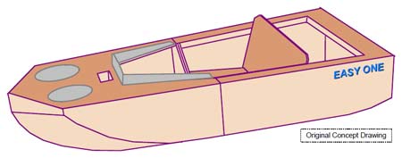 The idea for the EASY ONE came from the readers who requested a simple yet useful small multi-purpose hull design. It includes an ample beam, great freeboard, generous volume, seating for one (or two), and safety buoyancy. It is sturdy, easy to build, quite portable and utilizes a standard trolling or small gas motor.