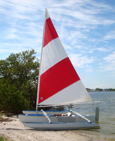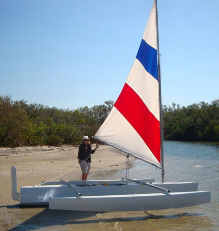 And if you’d like to see what these little tris are capable of in just 10-12 mph of wind, here’s a link to my ‘Trimaran Action Video’ featuring original Laura’s Boat equipped with a 95 sq. ft. vertical batten sail I designed and built.
