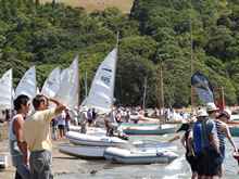 A view along the beach, there were so many boats here that trying to get a shot of them was impossible, this might be a quarter of them. The venue is Otarawao Bay, a Department of Conservation nature reserve with a small campground at one end, and a rangers house just back off the middle. The rules are "no vehicles on the beach", but for this days event the Rangers use a quad bike to take trailers down to the water and back. Otherwise its drag, carry or sail in from one of the several boatramps further up the river. It's a stunning place! |