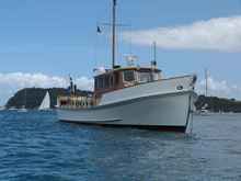 "Akarana" was for many years the Waitemata ( Auckland New Zealand) pilot boat, taking pilots out in all weathers and maintaining station waiting for incoming ships. Shes a wonderful example of an all conditions motor vessel, this 65 ft x 15ft ship was traditionally built in 1960 and is superbly maintained. Here is a link to some history. |