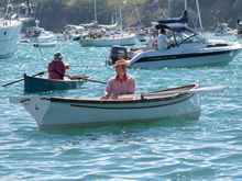 There were lots of small boats around that day, "May" is a lovely Whitehall type, here she is lining up for the "Master of the Mahurangi" rowing trophy. |