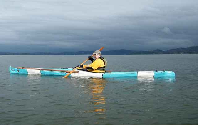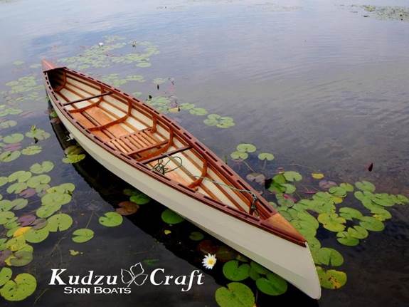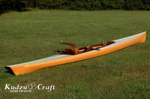 Fuselage frames boats are not limited to just kayaks either. Many styles of boats can be made this way. This past summer I designed and built a long skinny recreational rowing boat I named Cotton Row. It has a sliding seat and varnished wood transom.