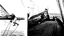 The page also includes a method for rolling a lug or gaff sail singlehandedly which leaves the boom fully exposed so that it can be attached to the boat before the sail is unrolled.
