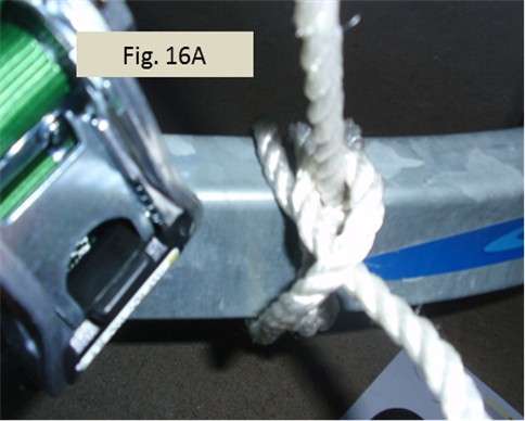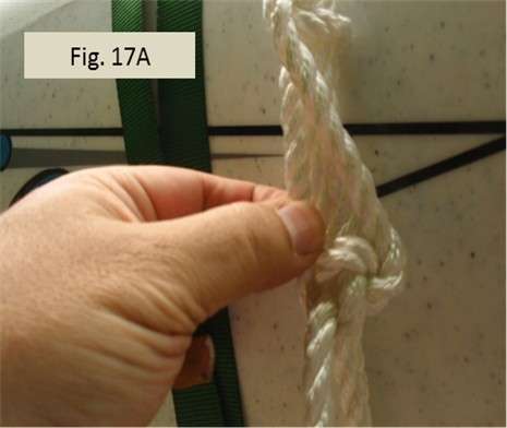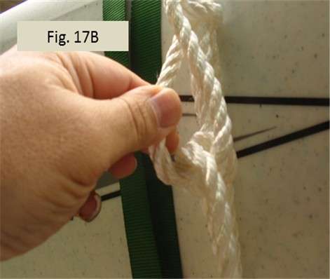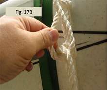 Fig. 16A and 16B show forming the two half hitches. My final tail was longer than 4 inches, so I added a third half hitch and that gave me a suitably short tail.