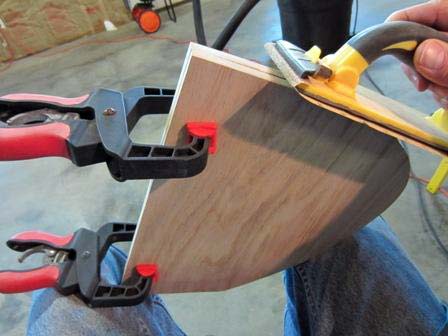 5. Use the sanding block to true the lines after cutting out the cheeks first individually then clamped together.