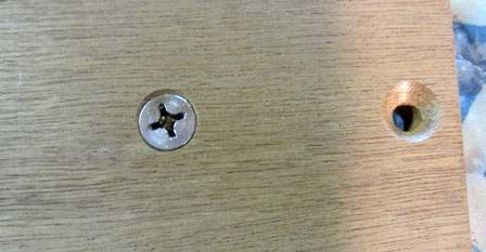7. The 4 lower holes used to secure the pintles must be countersunk on the inside of the cheeks. This will permit the rudder to raise and lower. Use a drill with a ½" countersink bit. Check your progress often so that the head of the machine screws are just flush with the board.