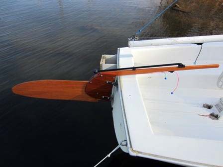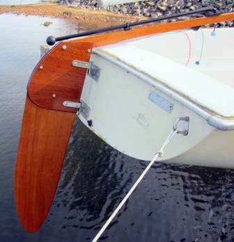 Notice the tiller in the rudderhead. The final ruddercheek dimensions, cheeks.pdf, are so that the tiller is completely covered. I think this looks better and probably gives the tiller more leverage on the cheeks.