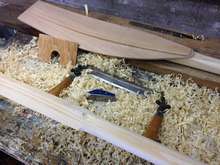 Using a draw knife, thumb plane, plywood 1.5" template and sandpaper, I rounded the loom starting at the lock position out to the start of the blade. See below for tools and shavings.
