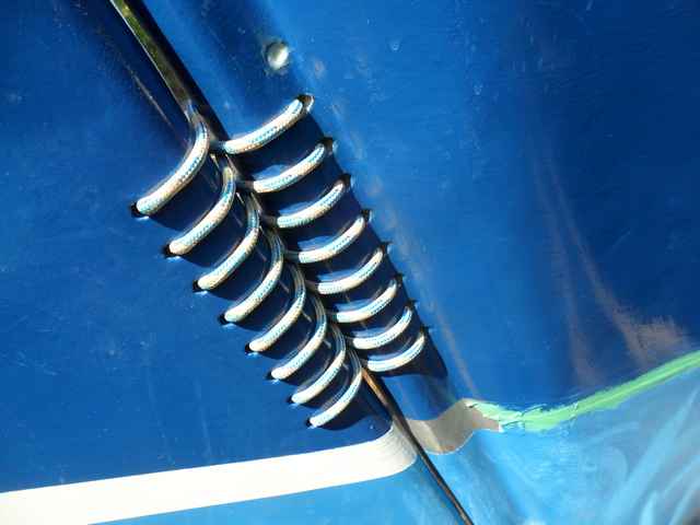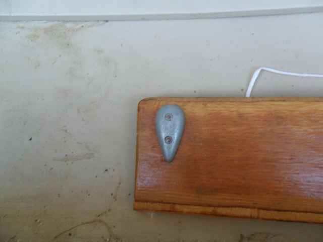 That's where I found the weights for my rudder, zincs. One on each side, through bolted. These zincs are nicely shaped to glide through the water with little resistance and they're much cheaper than lead.