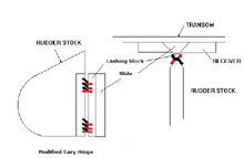 If you were to combine this method with the Cary hinge you have an easy to remove rudder mounting with an easy to replace hinge mechanism.