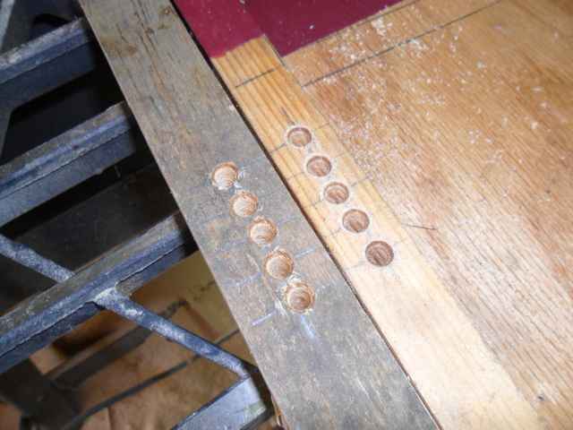 Marking them up I drilled five ¼ holes a ½ inch a part. I then tapered the holes using a grinding stone in the drill press,