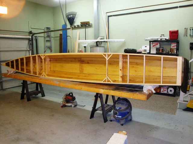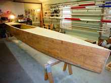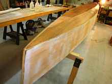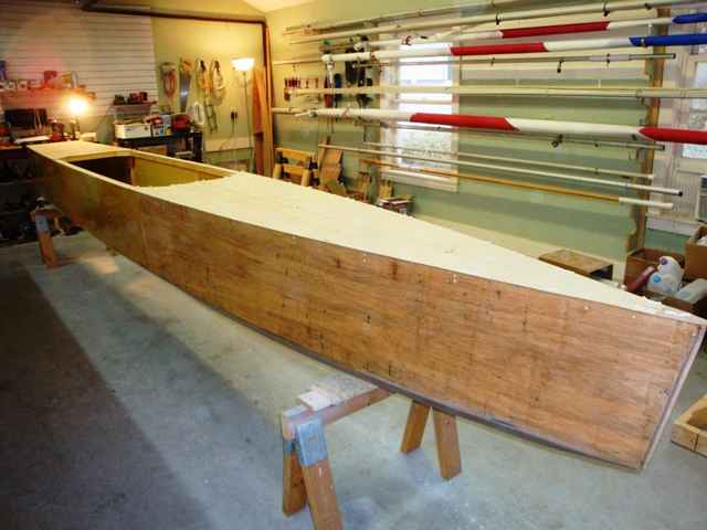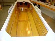 The hull is of stitch and glue construction, but not the way most folks do it. First, I used el cheapo 3mm lauan plywood everywhere – deck, side, bottom. Why? Because I have found that it’s stiffer and sturdier than the “gold standard,” AKA 3mm okoume. It’s also WAY cheaper (about $12 a sheet), and despite all them negative comments people so often make, it has never delaminated no matter how wet it got, or for how long.