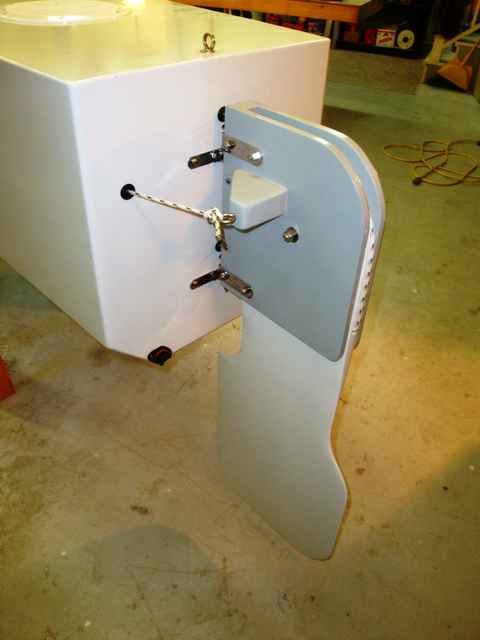 In my view, unstayed rigs are so much handier that stayed ones that I doubt I’ll ever have another of the latter. Yes, big unstayed masts with big sails wrapped around them can be heavy to plug in to their “sockets.” (This one weighs 32 lbs.) So I also had to design a pivoting tabernacle that lets me “front load” the mast at the beach, and then just tilt it vertical. Ultimately, this makes the boat even quicker to set up, especially on very windy days.
