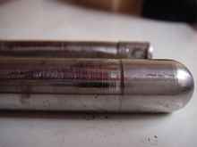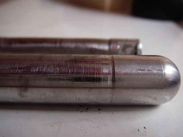 Wear to aluminum drum shaft (foreground) and idler pulley shaft. |
