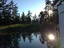 After dinner and cleanup, I read my Kindle for a couple of hours then went to bed. I have a head on board, and can sleep four comfortably. I woke up about 10pm and took a shot out the window. So beautiful at dusk. I've never seen another soul sleeping out on the slough in the more than 30 nights I've been there, away from the docks at least.