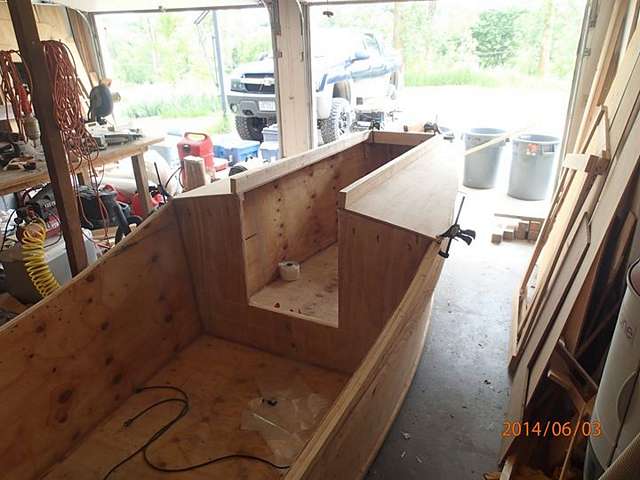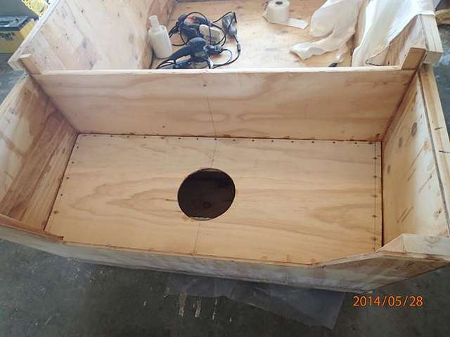 The motor well deck is installed. The hollow box underneath is glassed on all 6 interior sides. |