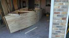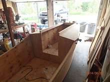 Interior panels are all fully glassed and filleted. Next boat project will use better plywood that doesn't require fiberglass on interior panels. Cabin decks and slot-top beams are roughed on. |