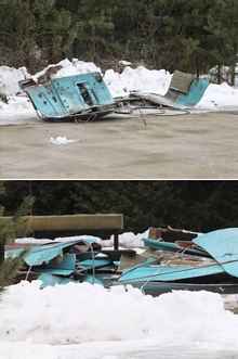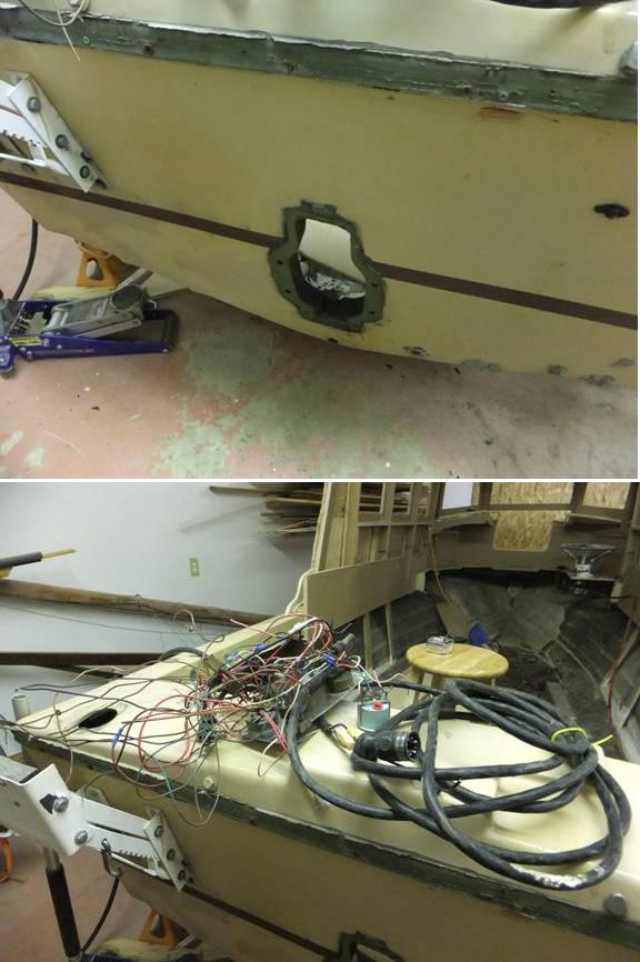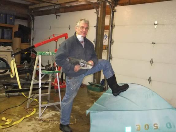 Her logic was pretty, well, logical. That particular hull had been in. The out, and back in to the shop a few times over the past several years. Not much progress, and little likely to come any time soon. Certainly not, this Building Season. The excuse that the trailer was not movable due to the snow no longer held much force. The Lucas says that it's easy to get rid of a non-repairable boat. He even shows the spectacle of a huge earth mover stomping one of his Tikihut castoffs into the Florida sand on YouTube. No lesser an authority, Mississippi Bob says that it's "easy." Suddenly, before the impulse left me; I grabbed the sawzall and started euthanizing.