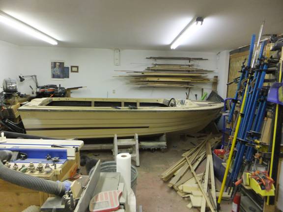 I weighed the simplicity of putting this boat back together more or less like the original. Then, with some prodding from here and there, I concluded that something with a pilot house and Bruce anchor up forward, towing bits back by the engine box, and a diesel fireplace would probably get more use. So, Roughneck is going through the birthing process. Sort of like some of the rest of us, this one wasn’t planned. I guess there’s 3 or 4 man-days into the project so far (tear out/replacement). She’ll get about 6 weeks of the Building Season, hopefully be ready to go back on a trailer, and then make room for some of her sisters in the shop. There’s only so much winter to go around.