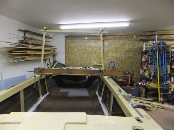 This little invention is what it took to bring the side decks back up to more or less level while stiffening and propping them up. They will have to hold a heavy cabin top.