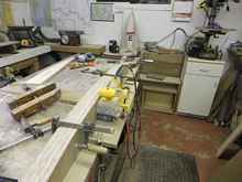 Waiting for the PL to do its stuff. Shaping and varnishing come next. Then, I’ve got to figure a way to levitate it across the shop and up into the air to fit supports, shear panels, and all that stuff. This will yield about 30 sqft under a 6 foot head room. Should be big enough for the basics. And, there will still be an adequate cockpit surrounding that humongous in-line six banger. I have no idea where the fuel tank(s) are going to hide. That will take one or more in-the-water tests to figure out. The whole metacentric heights thing for this hull has been tossed out the window. My normal method of determining stuff like that is by a home brew calculus I call Intuitive Extrapolation. But, this same basic hull design used to also support a fibreglass cuddy cabin and hard awning over the helm station. My workboat cabin ought to be OK.