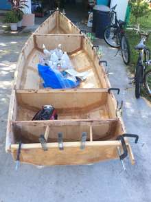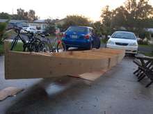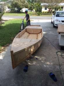 The Build I purchased a fairly decent used table saw for $85 and a Ryobi drill press (always wanted a drill press) and found the lumber I needed at Home Depot. Following Jim's advice from the book, he noted that the clearest lumber yard wood was usually found in 2x10's. I would concur! I ripped everything I needed for chines, stem, masts and spars from this lumber. We used four sheets of 1/4 inch Luan underlayment plywood. I knew I'd have to slather the heck out of it with epoxy to protect from delamination. We shall see! I am fairly certain that one spends more than the cost difference on epoxy for cheap plywood than if they'd bought high dollar marine plywood.
