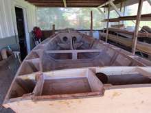 | I looked forward to new processes like the outboard's splash well, carlings to support the side decks, sweet little beams to support decking and thwarts. |