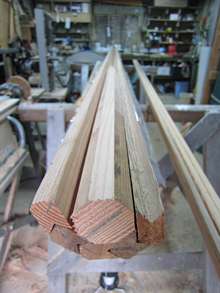 Once the weather warmed again, I finished the painting and fitting out. Made the rudder, tiller, centreboard and yes, the hollow spars! There were a few 'Oh my god!' moments as the staves nested together!