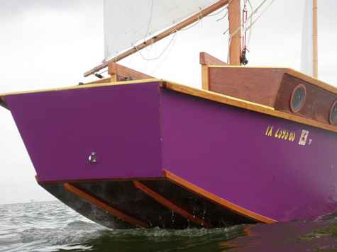The build was straight forward and Jim's book, Boatbuilding For Beginners was helpful in understanding a few of the assembly steps and details. We built a scale model out of heavy paper to better understand the design, construction details and assembly sequence. During the construction of the model is when we decided to add the engine well which was not in the original plans. Jim has since added the engine to the design drawings. Rosa and I also used the model to try out different color schemes for the boat as well. I will bypass the details of building Hapscut and save that for another article, but will mention a few things. With the online forums I got plenty of help and it sure was nice to have a few sailors that had already built Michalak designs drop by and offer some on-site advice. Our biggest challenge was moving and rolling the hull during construction. We had one accident that scared and bruised Rosa when we lost control of the hull while rolling it over. After that we started to enlist the neighborhood teenagers to help move the boat after that. Six strong teenagers could carry the hull and roll it without difficulty.